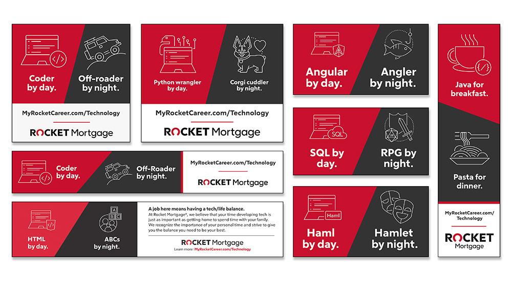 Our solution was the Tech/Life Balance campaign: As leaders in the tech space, we know there's your tech life. But we also know there's your life life. In other words, there's work, but there's life outside of work. Life is too short to work for a company that doesn't get you. The whole you. At the Rock Family of Companies, we do. it IS possible to have a great tech/life balance. We believe in the power of your tech and other passions coexisting. Our welcoming culture is something you'll feel day one, and it's one that will make you happier, more productive, and more brilliant.